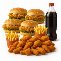 4 Zinger Burger, 10 Wings, 2 Fries, 1.5 Ltr Drink